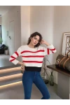 20026185 Triko Çizgili Bluz YESIL-EKRU