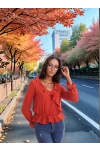 20343266 Ayrobin Kruvaze Fırfırlı Uzun Kol Bluz HARDAL