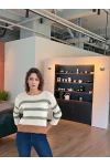20026185 Triko Çizgili Bluz YESIL-EKRU