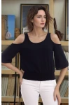 20333451 Ayrobin Omuzu Açık Beli Lastikli Kısa Kol Bluz GUL KURUSU