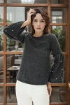 9100985 Yumoş Kolu Geniş Volanlı İncili Bluz GRI
